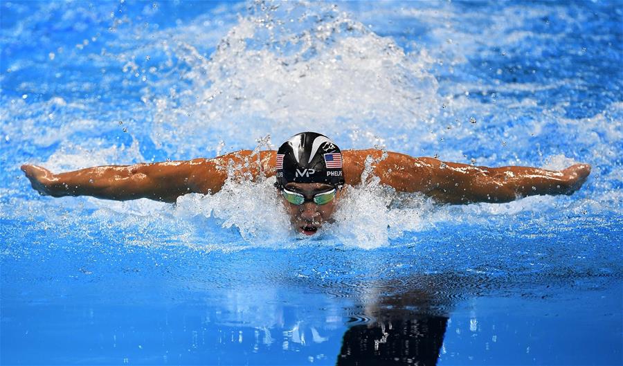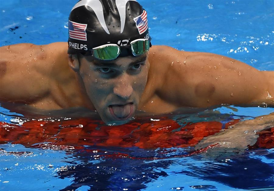 Michael Phelps of the United States competes during the men's 100m butterfly final at the 2016 Rio Olympic Games in Rio de Janeiro, Brazil, on Aug. 12, 2016. Michael Fhelps won the silver medal. (Xinhua/Han Yuqing)