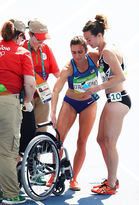 D'Agnostino, 24, immediately got up to help her rival - then, as it became clear that she had a right ankle injury, Hamblin tried to help her continue.