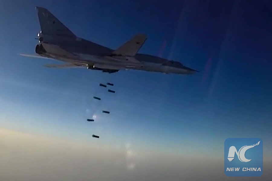 A Tupolev Tu-22M3 Backfire long-range bomber hits ISIS targets in Syria's Aleppo, Deir Ez Zor and Idlib governorates. Best possible quality. (Sputnik Photo)