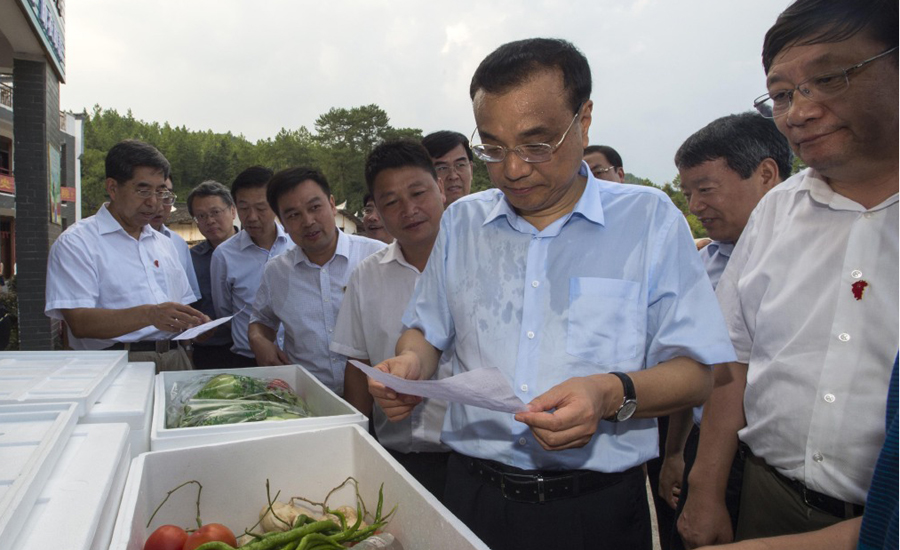 Premier Li Keqiang has been on an inspection tour of east China's Jiangxi Province between August 22 and 24. His stops included the countryside, as well as an industrial park and sites of flood control projects in cities. [Photo: weibo.com]