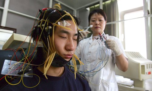 A young Chinese "Internet addict" receives an electroencephalogram check at the Beijing Military Region Central Hospital on July 6, 2005. Photo: CFP