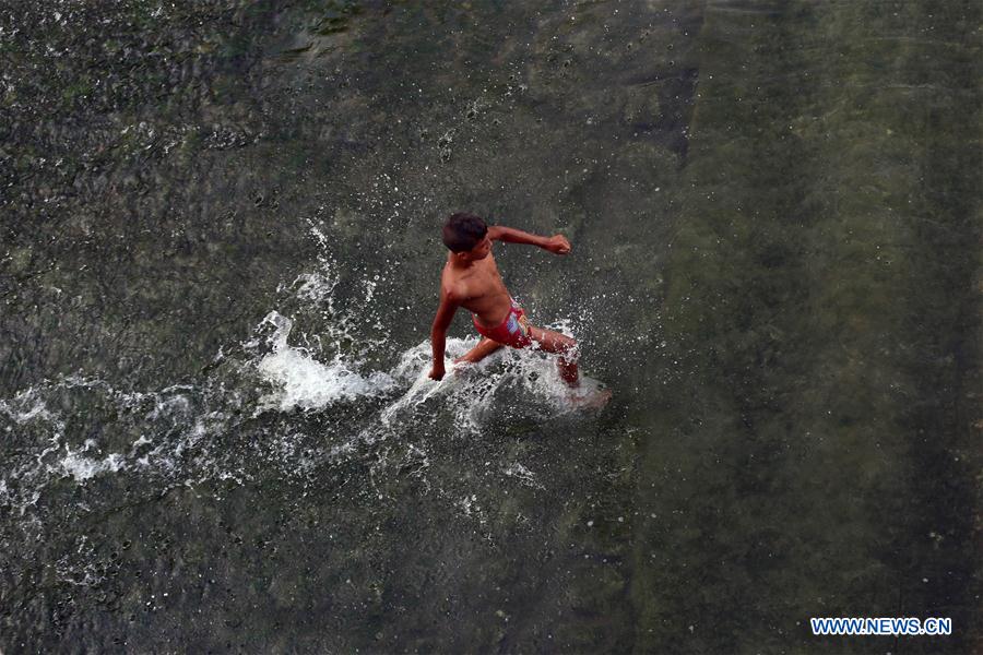 Egyptian boys swim in the River Nile at the Qanater Bridge during the Eid al-Adha festival in Qaliubiya, Egypt on Sept. 14, 2016. (Xinhua/Ahmed Gomaa)