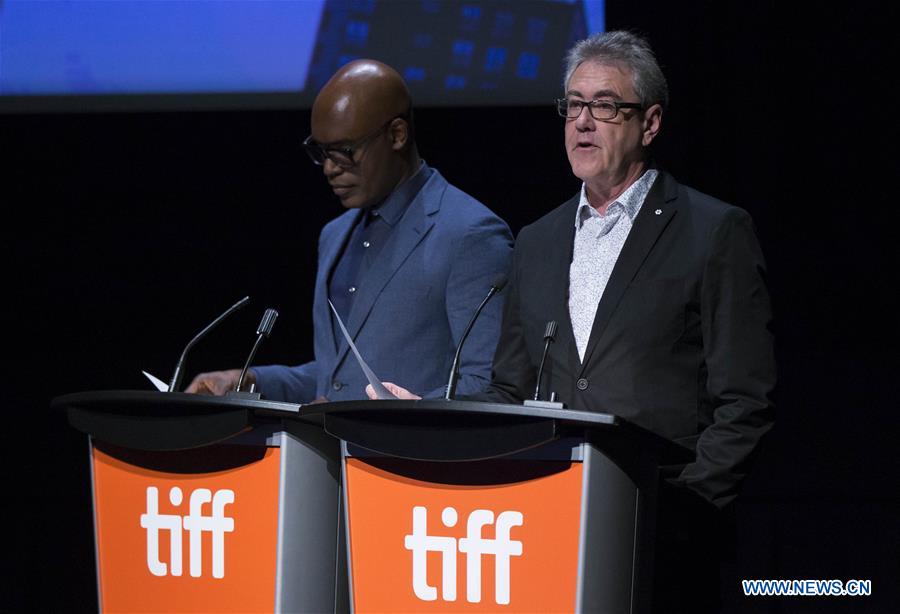 CEO and Director of TIFF Piers Handling (R) announces the winners during the awarding ceremony of the 41st Toronto International Film Festival (TIFF) in Toronto, Canada, Sept. 18, 2016. The FIPRESCI Special Presentations prize went to Chinese director Feng Xiaogang's film "I Am Not Madame Bovary" at TIFF on Sunday. (Xinhua/Zou Zheng)