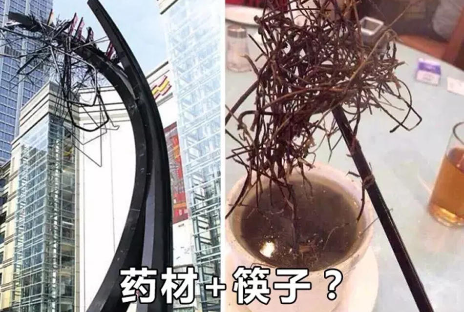 Chinese netizens have mocked the statue for looking like a pair of chopsticks clenching some herbal medicine.[Photo/Dongguan Times]