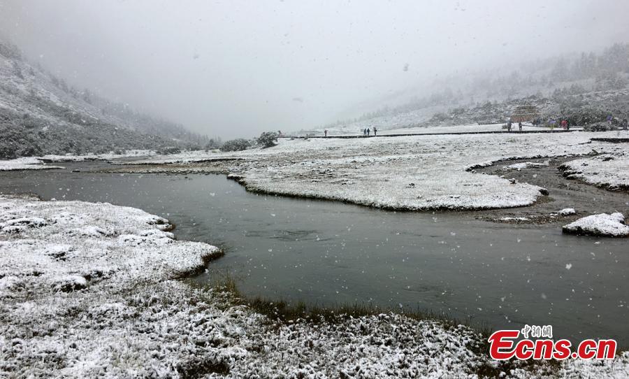 Visitors enjoy view of snow at Daocheng Yading scenic spot in Ganzi Tibetan Autonomous Prefecture of southwest China’s Sichuan province on September 20, 2016. Affected by the cold spell, the region sees snow in recent days. Daocheng Yading scenic spot is constituted by snow mountains, rivers, lakes and alpine meadow. Unique landscape and original natural beauty make the place a fairyland. (Photo: China News Service/ Zhong Xin)