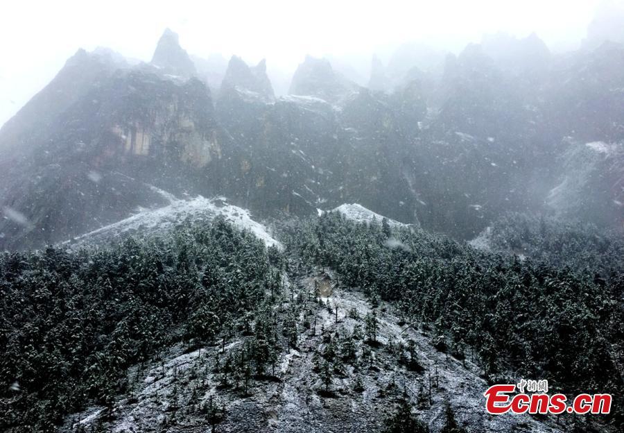 Visitors enjoy view of snow at Daocheng Yading scenic spot in Ganzi Tibetan Autonomous Prefecture of southwest China’s Sichuan province on September 20, 2016. Affected by the cold spell, the region sees snow in recent days. Daocheng Yading scenic spot is constituted by snow mountains, rivers, lakes and alpine meadow. Unique landscape and original natural beauty make the place a fairyland. (Photo: China News Service/ Zhong Xin)