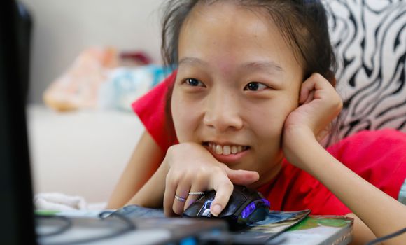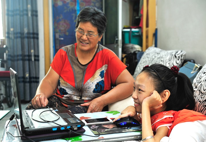 Guo Chunmei is browsing the Internet.
