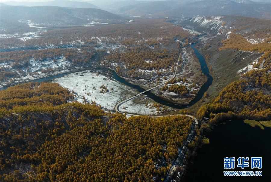 Aerial photos show the breathtaking scenery of A’er Mountain in northern China’s Inner Mongolia Autonomous Region on Sept. 28. The mountain is famous for its abundant volcanic lakes, thick primeval forests and magnificent landscapes. Temperatures high up on the mountain have already dropped to below 0 degrees centigrade, creating a mixture of golden pines and snow-capped peaks. (Xinhua / Lian Zhen)