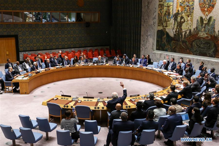 Photo taken on Oct. 8, 2016, shows the United Nations Security Council voting on a Russia-drafted resolution on Syria, at the UN headquarters in New York. The UN Security Council on Saturday failed to adopt a Russian draft resolution on Syria as it didn't garner enough support in the 15-nation council. (Xinhua/Li Muzi)