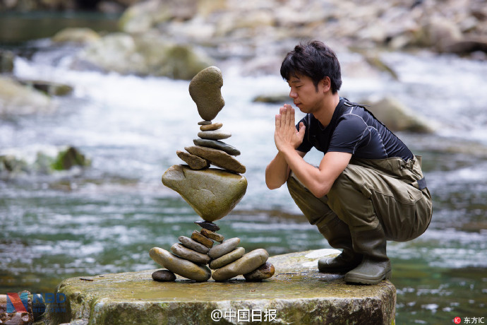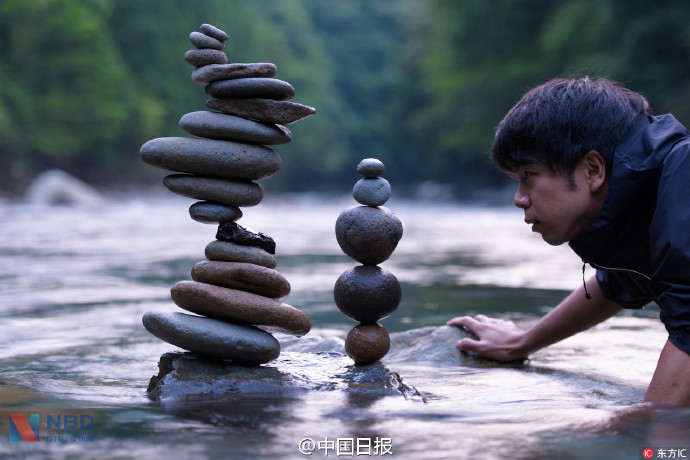 And what is even more fascinating is that the sizes of the rocks he uses for a sculpture vary. One may see a large one stacking on top of a small one, or a pebble standing up vertically with its edge.