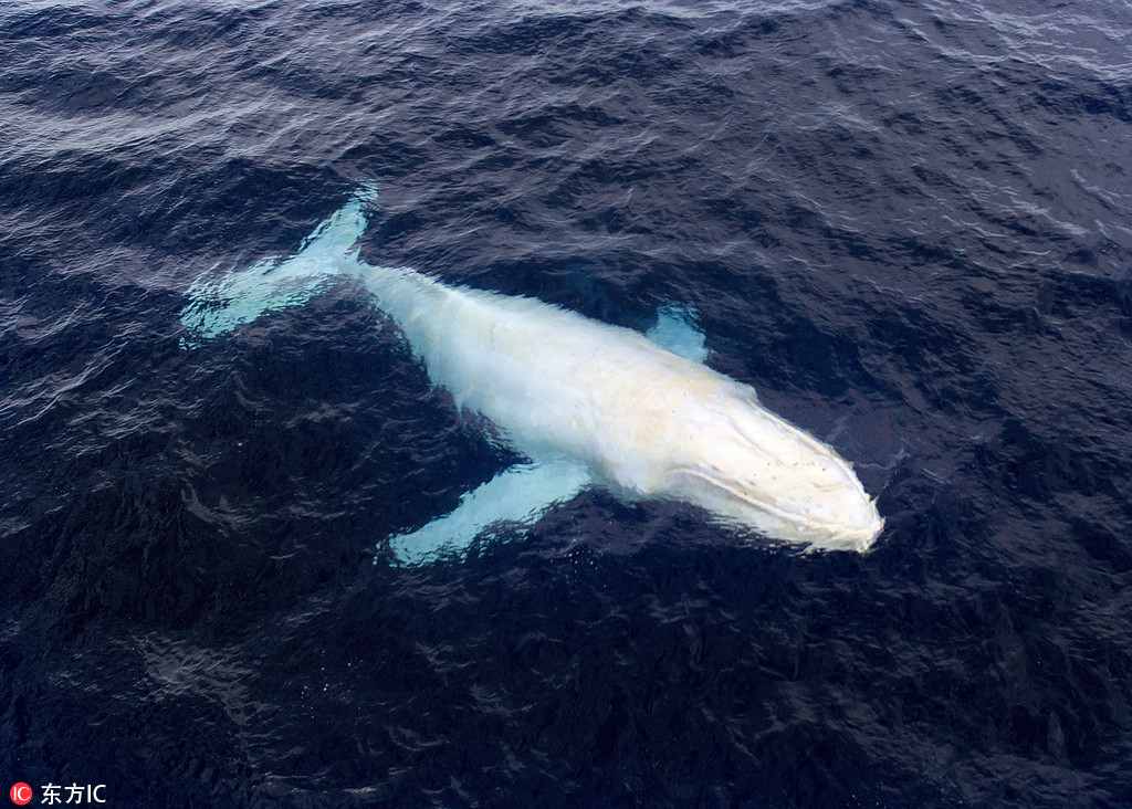 Migaloo, the unique white whale first seen in 1991, was again spotted in New South Wales, Australia. Glowing with a dim light in the darkness of the ocean, the giant creature is said to be one of the only two documented white humpback whales, whose name means “White Fella” in an Australian aboriginal language. (Photo / People’s Daily Online)