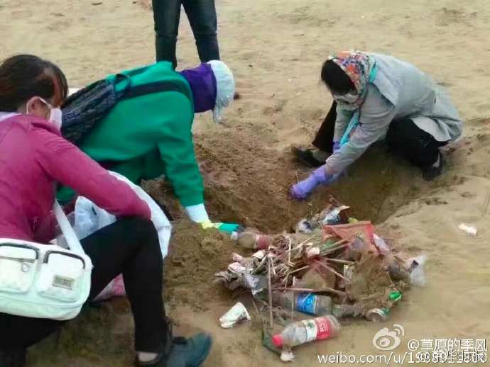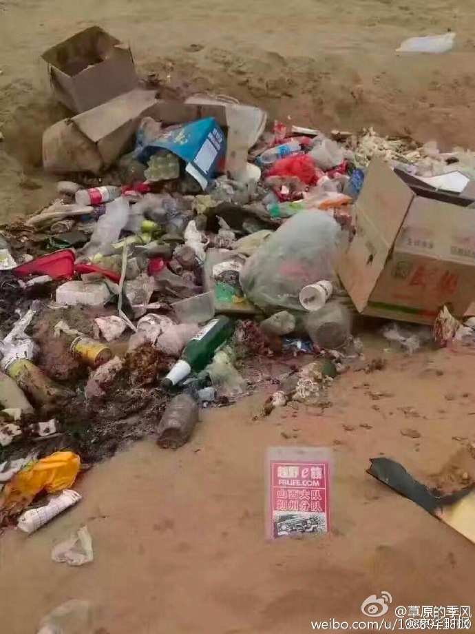 Attendees of an off-road gathering in the Tengger Desert in Inner Mongolia buried a quantity of garbage in the sand over the National Day holiday, posing a serious threat to the surrounding environment, according to a Weibo user. More than 100 sanitation workers have since been deployed to find and remove the garbage.