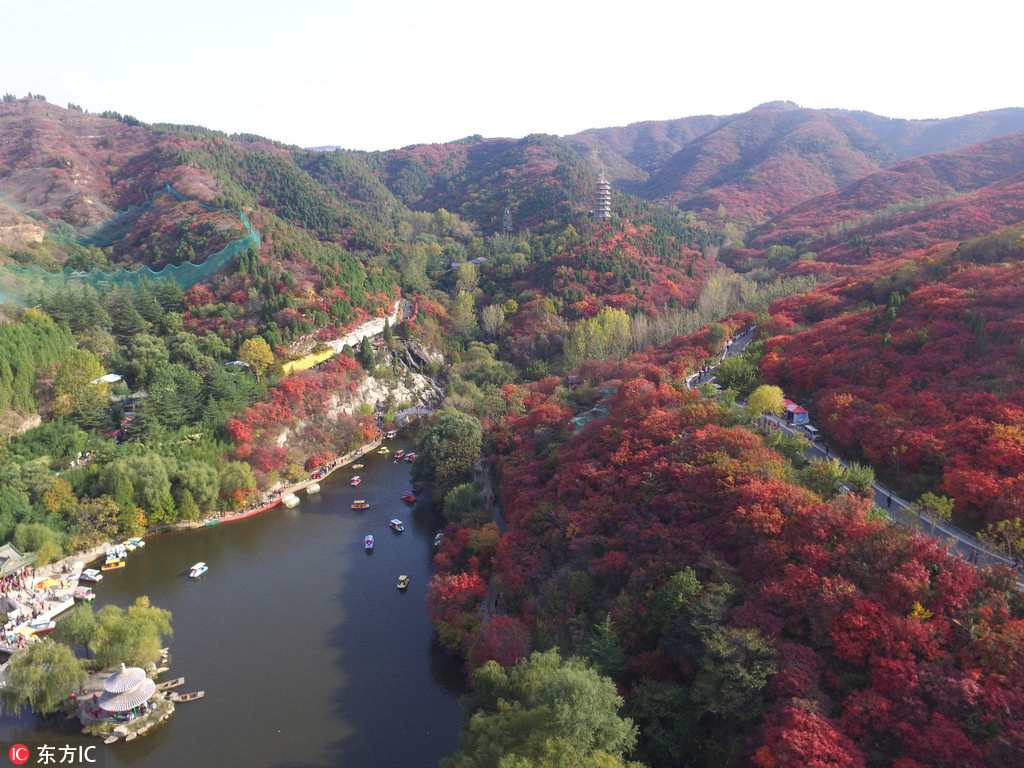 Autumn chill has added a touch of scarlet to the Hongyegu Scenic Spot in Jinan, Shandong province. Valleys and mountains shimmer under the sunlight, like giant rubies scattered across the ground. The red leaves will stay on the trees for one to two months. Once they fall, the ground will be covered with thick red foliage, attracting visitors to enjoy the beauty of nature.