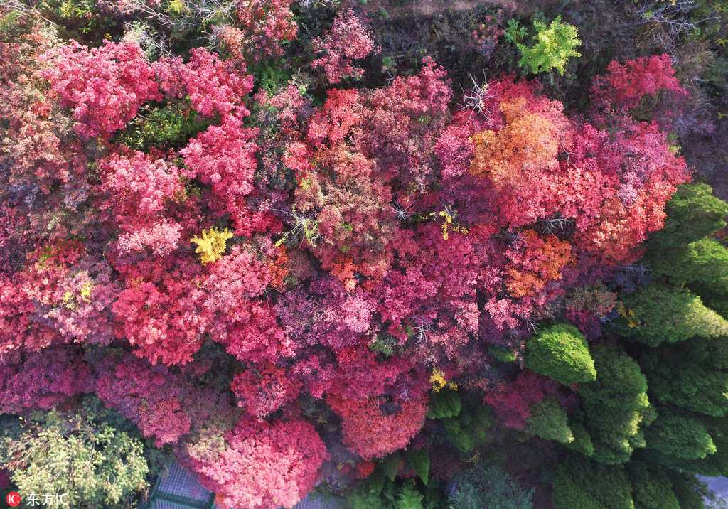Autumn chill has added a touch of scarlet to the Hongyegu Scenic Spot in Jinan, Shandong province. Valleys and mountains shimmer under the sunlight, like giant rubies scattered across the ground. The red leaves will stay on the trees for one to two months. Once they fall, the ground will be covered with thick red foliage, attracting visitors to enjoy the beauty of nature.