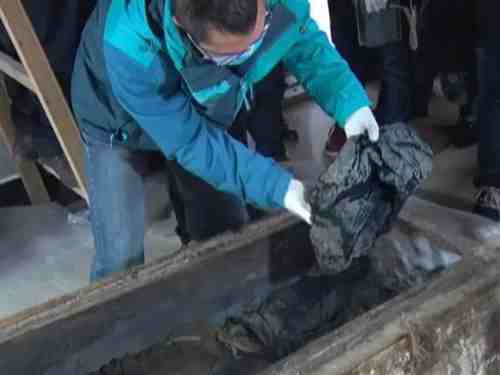 Recently, a female corpse from around 500 years ago was unearthed in Jingzhou, Hubei province. According to some experts, the well-preserved corpse is in such good condition thanks to the thick coat of lime and glutinous rice paste outside the coffin. There were also herbs and jujubes found on the bottom of the coffin. The corpse is now immersed in a protective solution. Its clothing will be sealed in bags and preserved in a low-temperature environment for future studies.