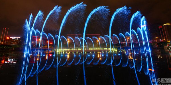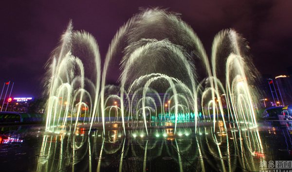 The largest musical fountain in Hainan province, located in the city center of Haikou, debuted on the evening of Nov. 6.