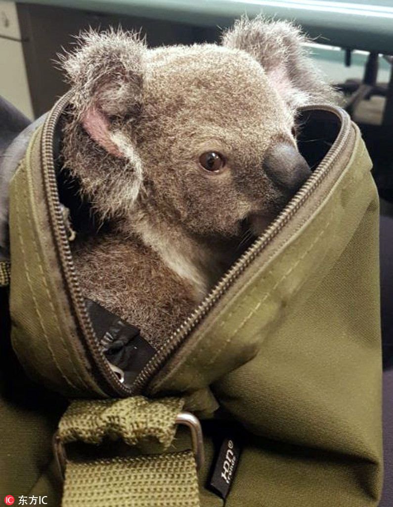 A baby koala was found in a woman’s bag in Brisbane, Australia. The chubby 6-month-old baby, which weighed 1.5 kilos, was dehydrated but “doing well,” according to the local police. (Photo / People’s Daily Online)