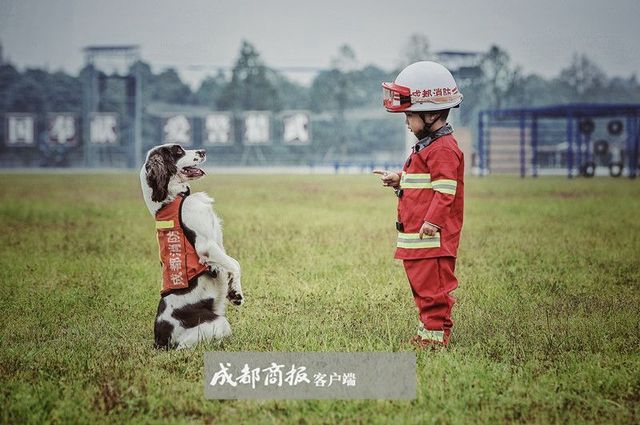 Huang Rui, the boy’s father, is an actual firefighter in Zigong, Sichuan province. Huang took the pictures with his son in an effort to celebrate National Fire Prevention Day on Nov. 9. The father hopes his son can be as brave as a firefighter to tackle life's obstacles in the future. (Photo / Chengdu Business Daily)