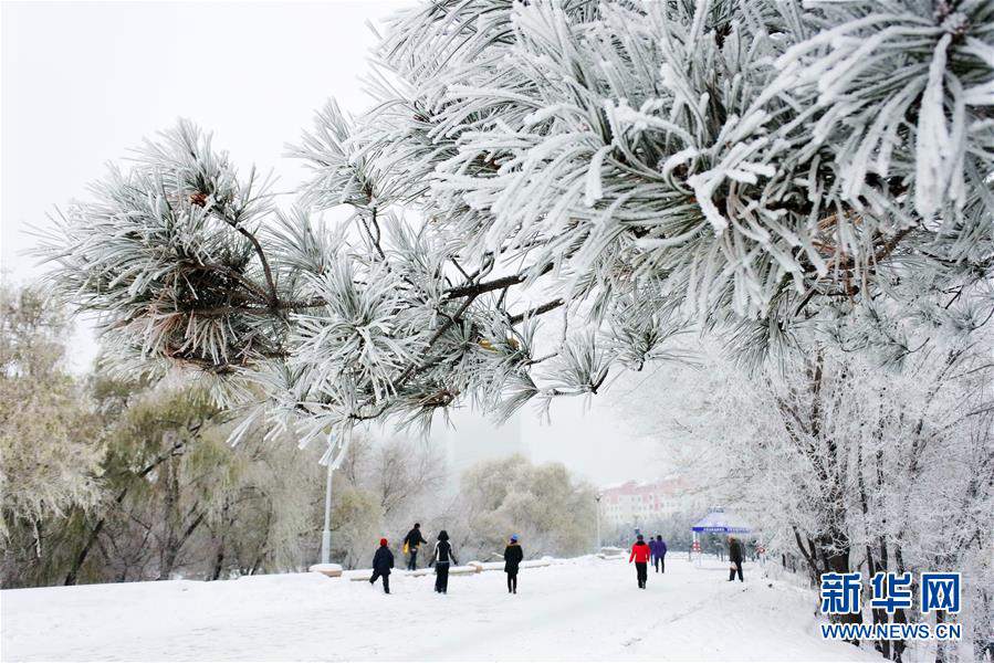 Freezing fog in Mudanjiang, Heilongjiang province has covered the city with hard rime, whose comb-like appearance and shining silver color have created a winter wonderland, attracting citizens to enjoy the outdoor scenery. (Photo /Xinhua)