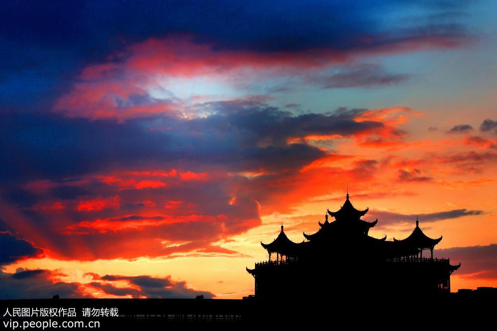 A crimson glow ignited the night sky in Xinjiang, Anhui province on Nov. 21. Due to the sudden drop in temperature, a flaming cloud shrouded the city, reflecting its glowing radiance on the inky-blue sky. (Photo / Shi Guangde)