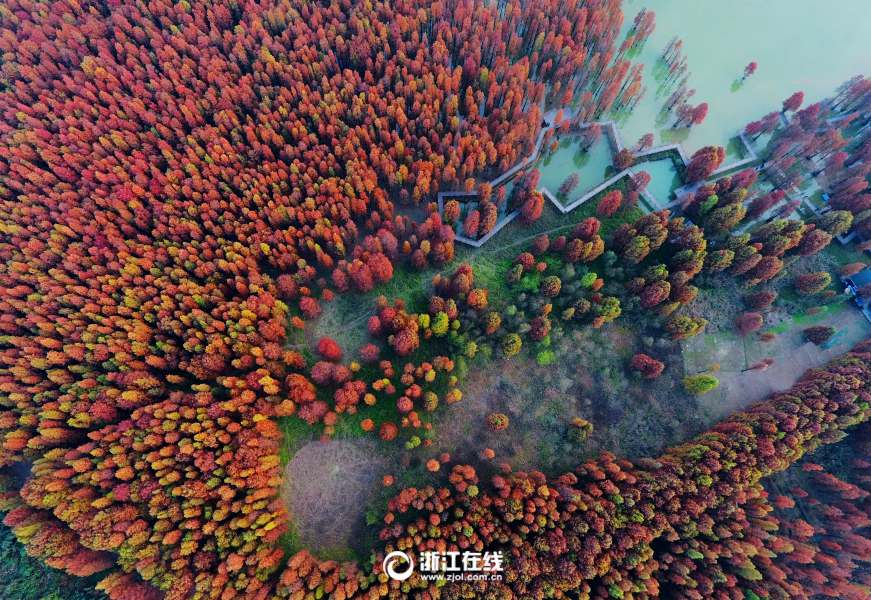 Winter chill has dyed red the forest in Qingshan Lake in Lin’an, Zhejiang province. The water-flooded forest features more than 10,000 trees, with an average height of 30 meters. The unique combination of water and foliage attracts over 250,000 visitors each year. (Zjol.com.cn)