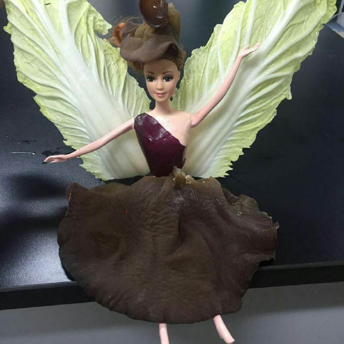 Recently, a group of students from Sichuan Agricultural University fashioned several outfits made of vegetables for Barbie dolls. They dressed the dolls in cabbage, mushrooms, corn, onions, chillies and Chinese chives. Quite a few netizens gave a thumbs-up to the students for their creativity.