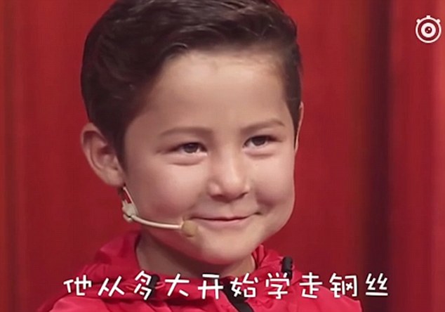 The child, named Abdullah, comes from Western China and is already a veteran rope walker.