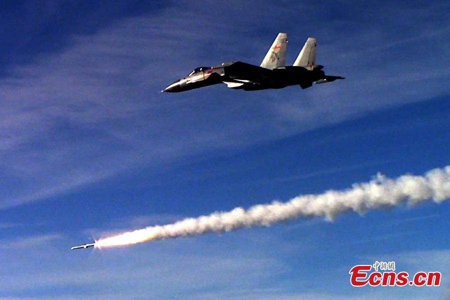 The Chinese Navy recently conducted a drill for a large fleet of naval vessels and aircraft including aircraft carrier Liaoning in the Bohai Sea, according to military sources on Thursday, December 15, 2016. In formation with several destroyers and frigates, the Liaoning carried out training in reconnaissance and early warning systems, air interception, sea assault, air-defense and anti-missile exercises. Carrying live ammunition, several batches of J-15 carrier-based aircraft had performed strike exercises. (Photo: China News Service/Mo Xiaoliang)