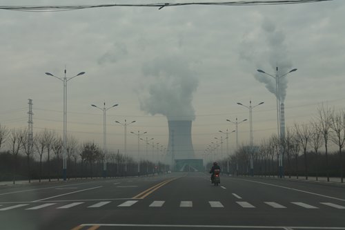 A rider passes by a plant in Binzhou, East China's Shandong Province, on December 9. Photo: CFP