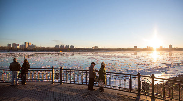 Local residents of Blagoveshchensk, Russia enjoy the view of Heilongjiang River (or Amur River in Russia), a boundary river between China and Russia.