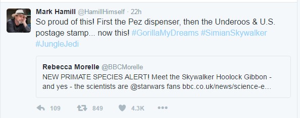 And because the scientists who made the discovery happened to be fans of the Star Wars movies, these "jungle Jedi" that live in the treetops were given the common name "Skywalker hoolock gibbon".