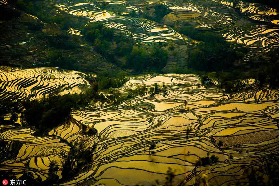 Landscape of terraced rice fields of the Honghe Hani Rice Terraces, one of the UNESCO World Heritage Sites, in Yuanyang county, Honghe Hani and Yi autonomous prefecture, Southwest China's Yunnan province. [Photo/IC]