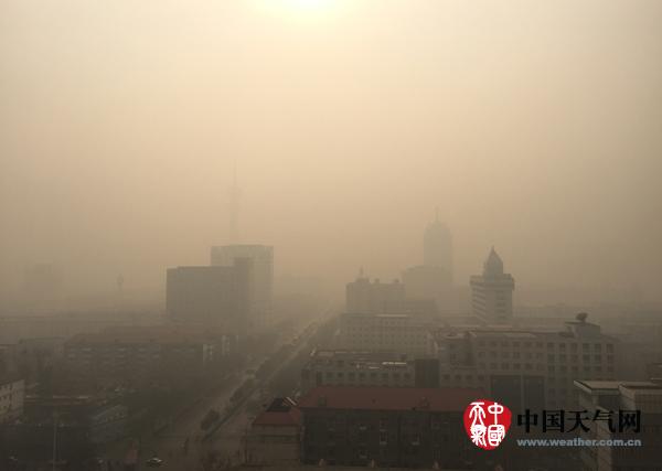 Buildings enveloped in smog in Shijiazhuang city, Hebei province. [File photo: weather.com.cn]