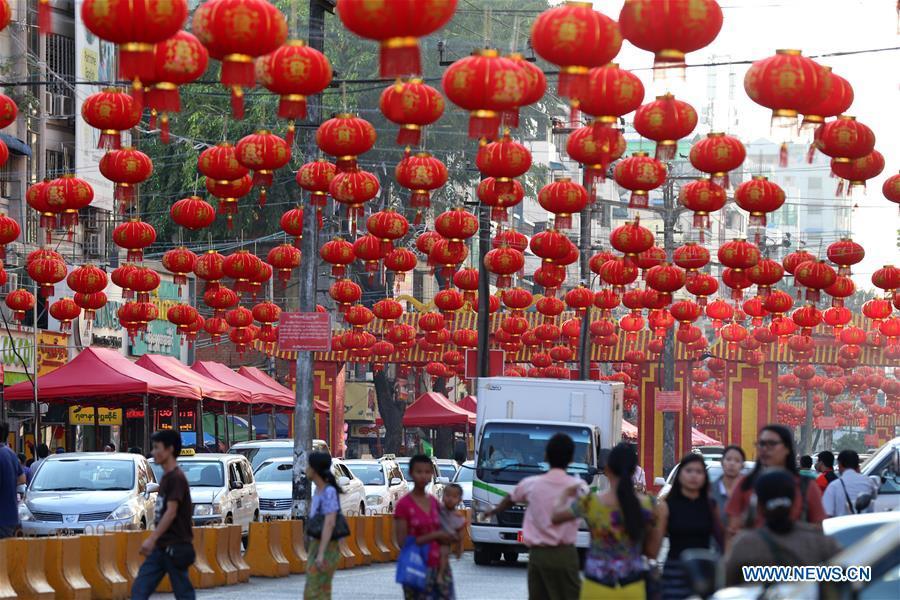 Photo taken on Jan. 25, 2017 shows lanterns decorated for the upcoming Chinese Lunar New Year in the Chinatown of Yangon, Myanmar. The Chinese Lunar New Year falls on Jan. 28 this year. (Xinhua/U Aung)