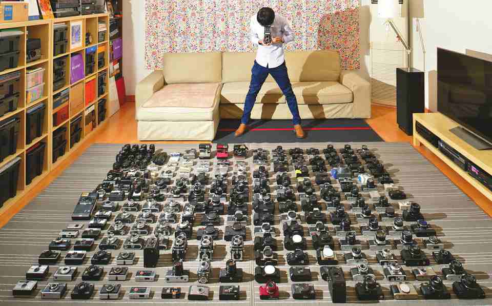 Li Kang, a young man in Chengdu, Sichuan province, has collected 210 cameras over the past 10 years.