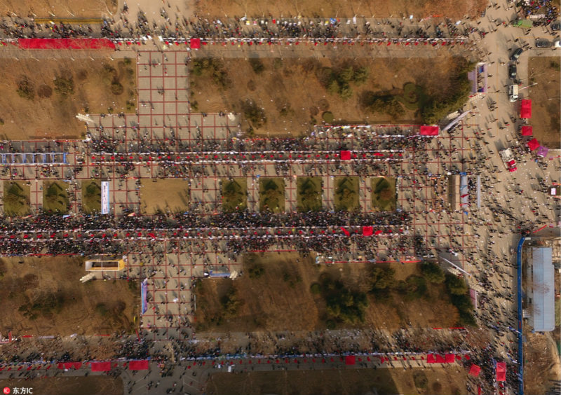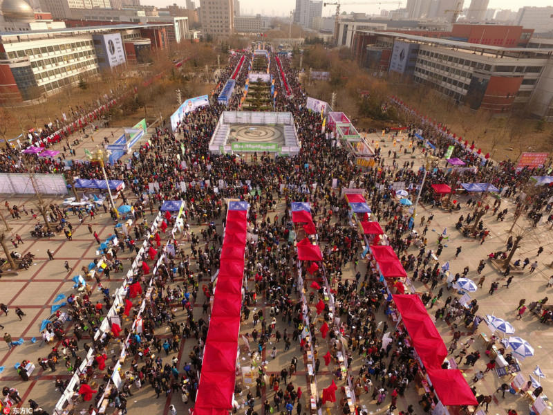 Tens of thousands of graduates were seen swamping to a massive job fair in north China’s Hebei province on February 8, 2017.