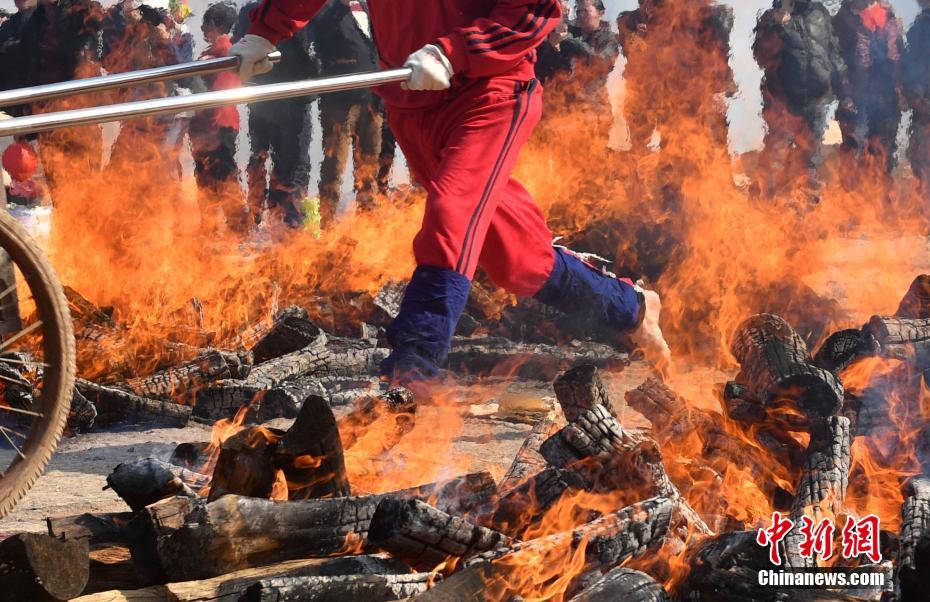 A fire-jumping activity was held in the village of Songdong in Putian, Fujian province on Feb. 12, the 15th day of lunar January, China News reported. During the activity, villagers jumped over a fire to pray for a better new year. The event, held once a year to celebrate the Lantern Festival, continues until the fire burns out.