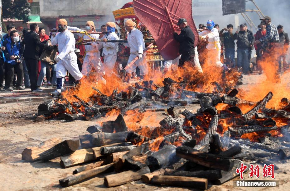 A fire-jumping activity was held in the village of Songdong in Putian, Fujian province on Feb. 12, the 15th day of lunar January, China News reported. During the activity, villagers jumped over a fire to pray for a better new year. The event, held once a year to celebrate the Lantern Festival, continues until the fire burns out.
