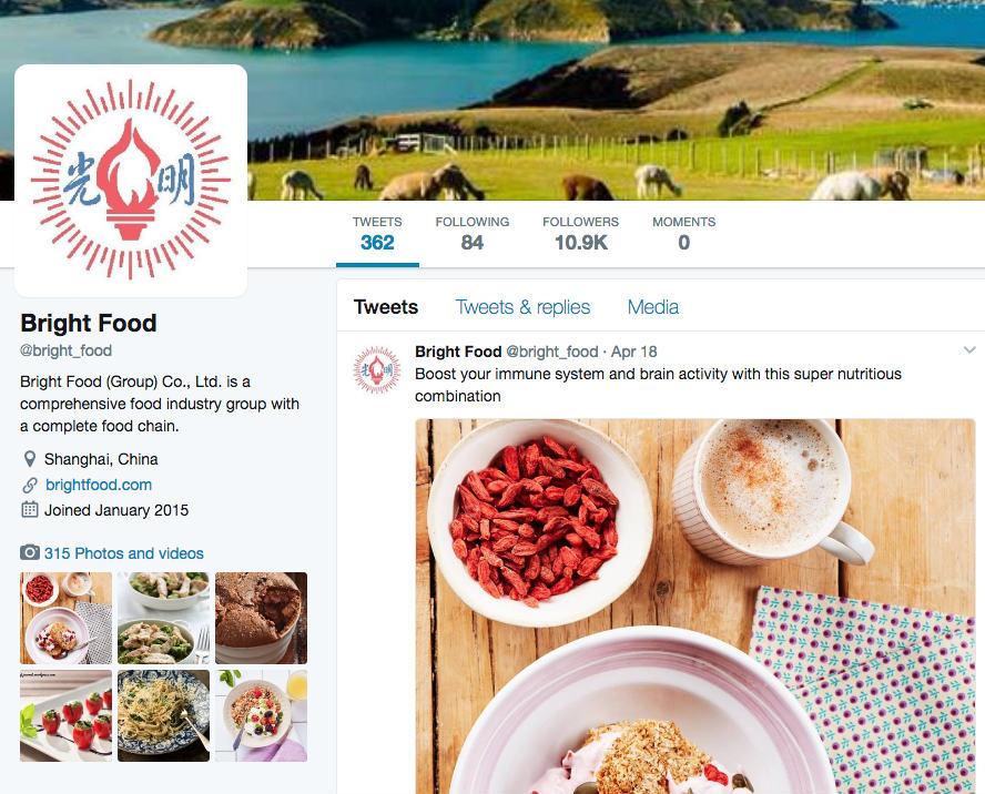 Bright Food spotted the trend and opened their official twitter account (@bright_food) in January 2015, through which the company’s brand and image is being promoted. Having some 10,900 followers on Twitter in two years, Bright Food Group believes that well known social medias will continue to help the company to reach more audience oversea and make influence in the international market. The Twitter timeline at https://twitter.com/bright_food introduced the Bright Food products and the company to the world.