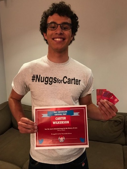 Carter Wilkerson gets free chicken nuggets as he breaks record for most retweet (file photo/Twitter)