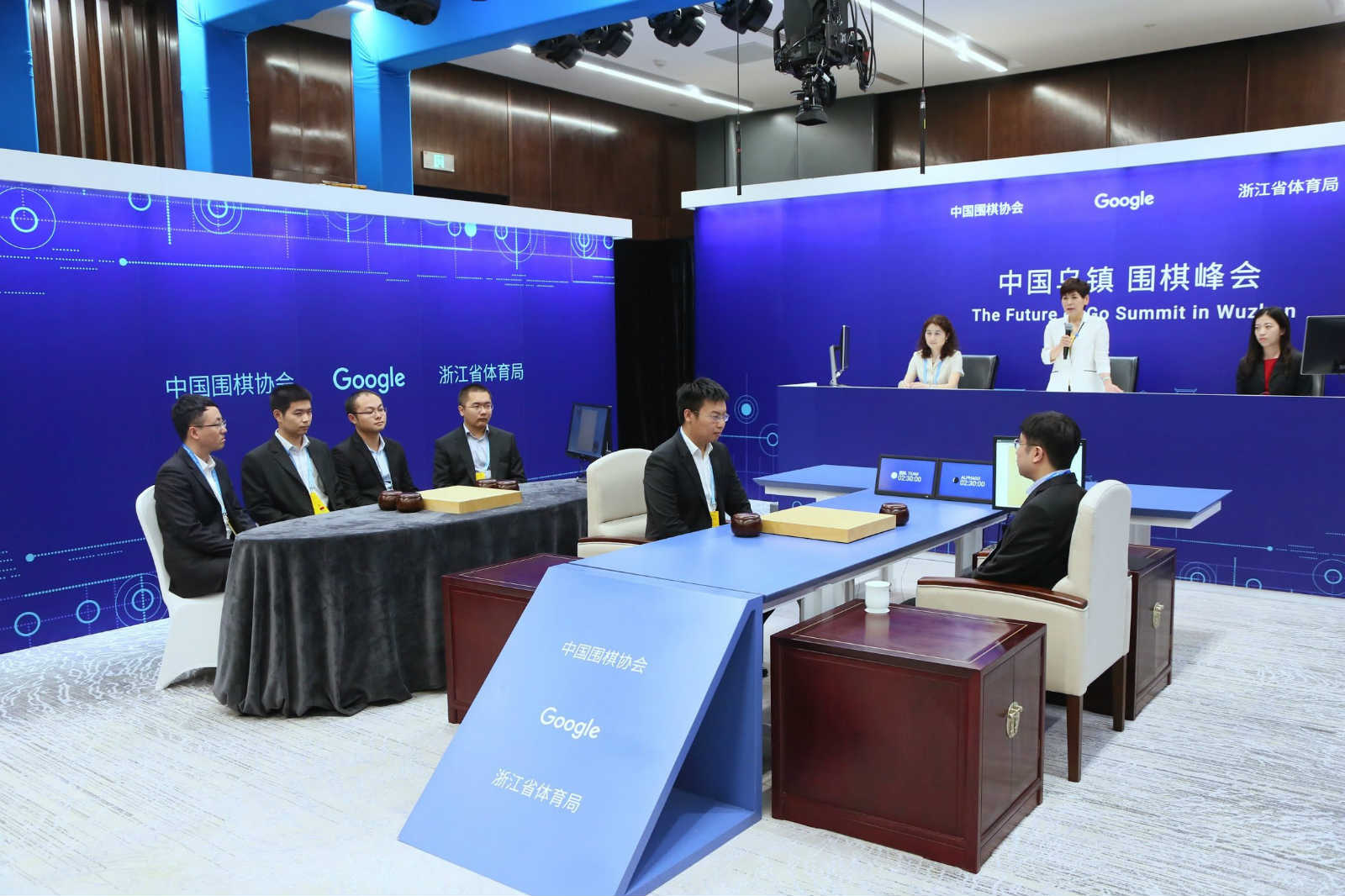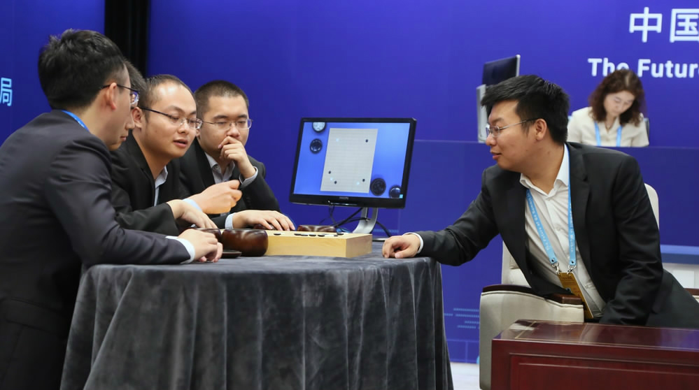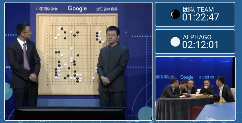 After cooperating with human weiqi (Go) players in a "Paired Go" match this morning, AlphaGo, the weiqi AI program, stood alone against a team of Chinese grandmasters in a "Team Go" showcase match.
