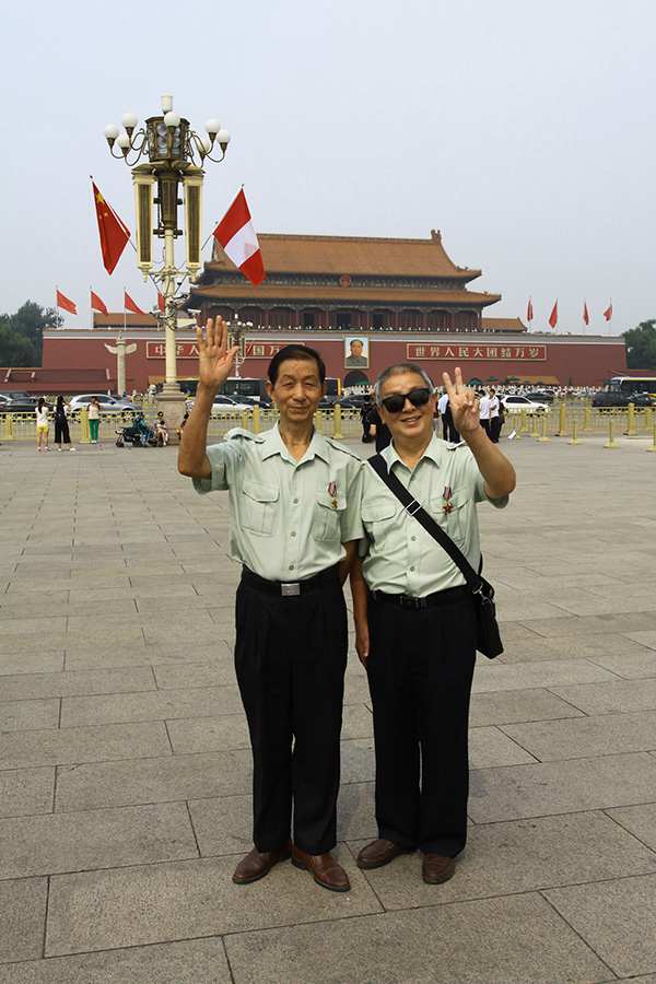 Two comrades-in-arms traveled to Beijing after retirement and took a photo as a souvenir.
