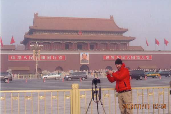 An old man who takes photos at Tiananmen Square on a regular basis, always in the same costume.