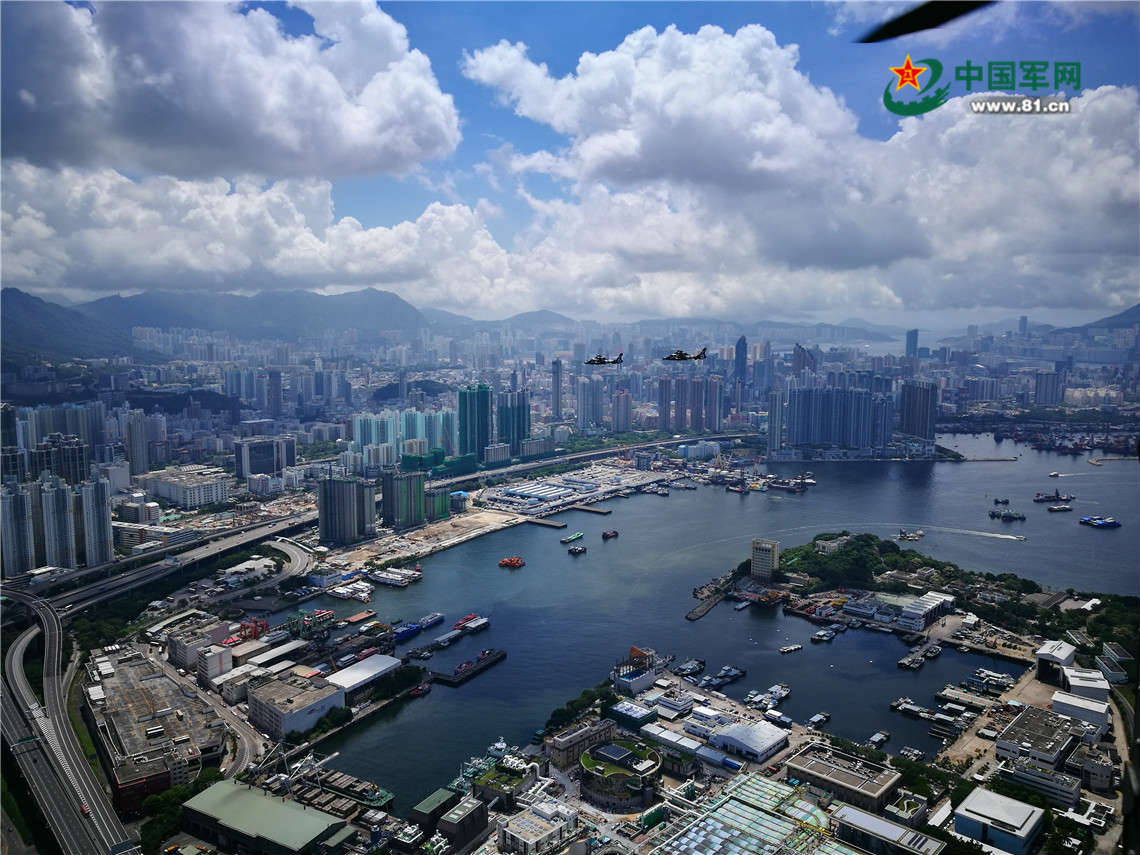 The guided-missile frigates Huizhou and Qinzhou as well as three helicopters of the Chinese People's Liberation Army (PLA) Hong Kong Garrison conduct joint air and sea patrol operations in China's Hong Kong Special Administrative Region (HKSAR) on June 6, 2017. (81.cn/Photo by Zhou Hanqing,Tang Jia,Yi Ding)