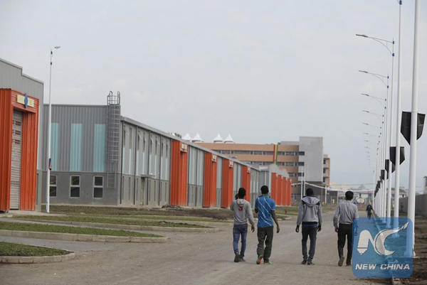 Local residents walk past the Hawassa Industrial Park in Hawassa, 275 kilometres south of Addis Ababa in Ethiopia on July 13, 2016. (Photo/Xinhua)