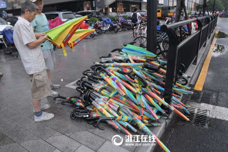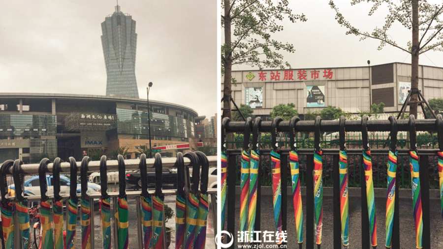 Shared umbrellas have made their way to Hangzhou, Zhejiang province, by way of Shanghai. By scanning QR codes, citizens can rent the umbrellas placed in public areas including the railway station, subway stations and shopping malls. A total of 50,000 umbrellas have been distributed to shelter citizens on rainy days.