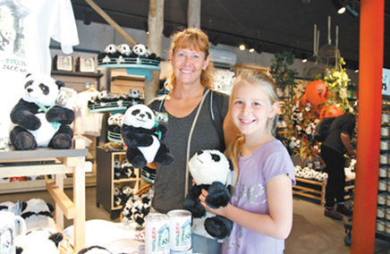 Tourists from Denmark are delightedly selecting Chinese panda themed souvenirs in a gift shop of the Berlin Zoo. (Photo by Guan Kejiang from People’s Daily)