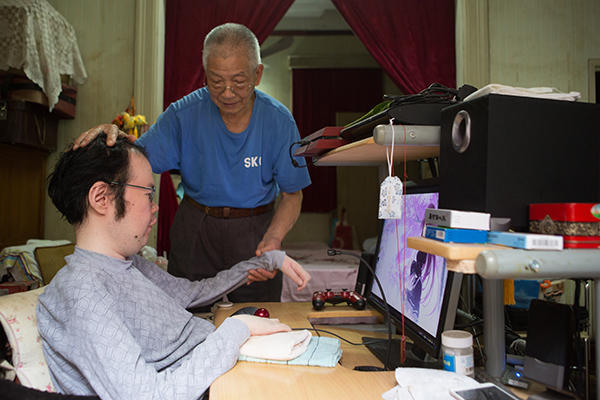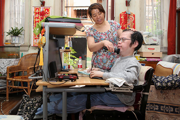Born in 1985, Feng Jinyuan has not been able to walk because of muscle weakness.