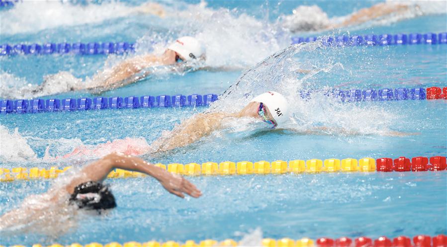 China's Sun Yang (R) competes during the Men's 200m Freestyle final of swimming at the 17th FINA World Championships in Budapest, Hungary on July 25, 2017. Sun Yang won the gold medal with 1 minute and 44.39 seconds. (Xinhua/Ding Xu)