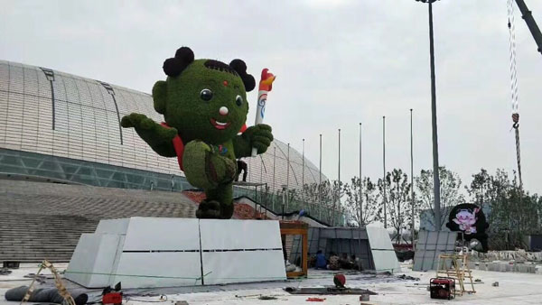 Sporting excellence and physical prowess will be on display at China's 13th National Games in September, so netizens were underwhelmed by the curious appearance of a topiary version of official mascot Jinwa in host city Tianjin on Thursday.